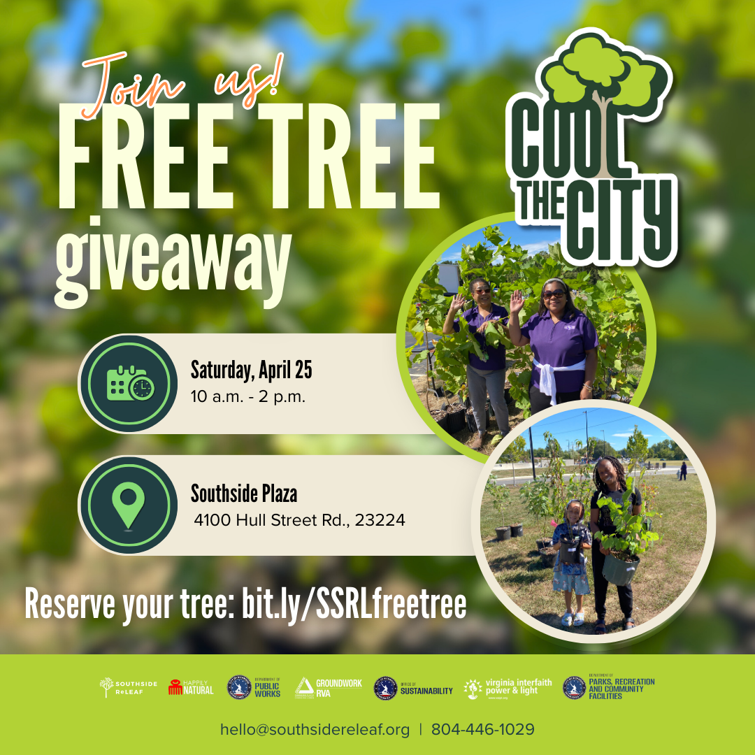 Southside ReLeaf is giving away up to 500 *free* trees to City of Richmond residents on Saturday, April 25, 2026, as part of our Cool the City campaign to reduce extreme heat in the city’s hottest neighborhoods.
